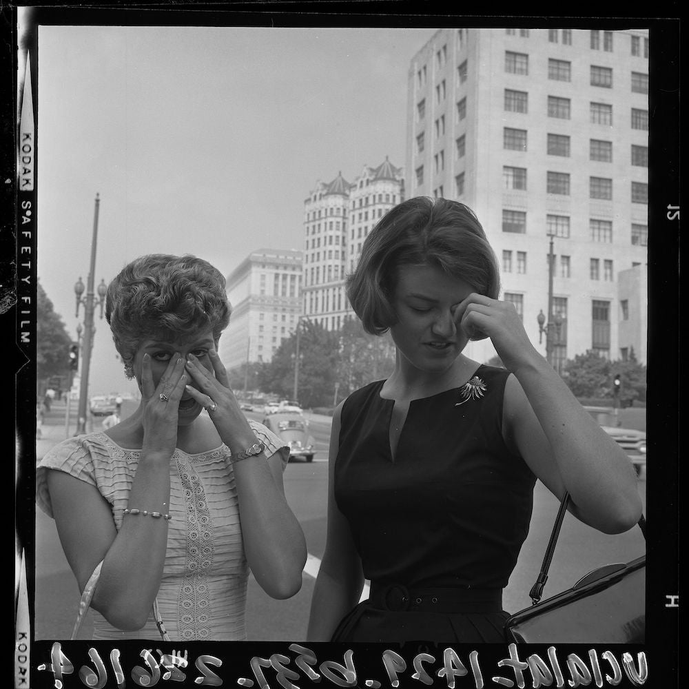 “Two women on smoggy day in downtown Los Angeles, Calif., 1964.” October 7, 1964. Publisher: Los Angeles Times. UCLA Library Special Collections.