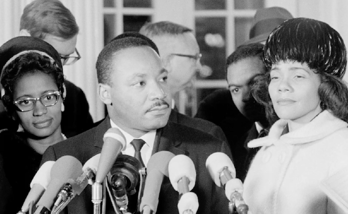 Hearst Metrotone News: “Martin Luther King visits LBJ,” also depicting Coretta Scott King (right), December 18, 1964.