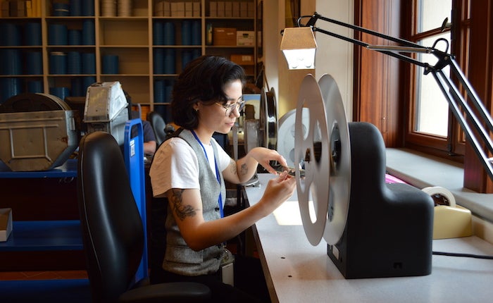 Staci Hogsett, Head of Collections: The International Federation of Film Archives (FIAF), National Film Preservation Foundation and other organizations often have great resources for those interested in learning more about the field. Our student interns in the Collection Services department come from a wide range of backgrounds and we’re always happy to teach the skills needed.