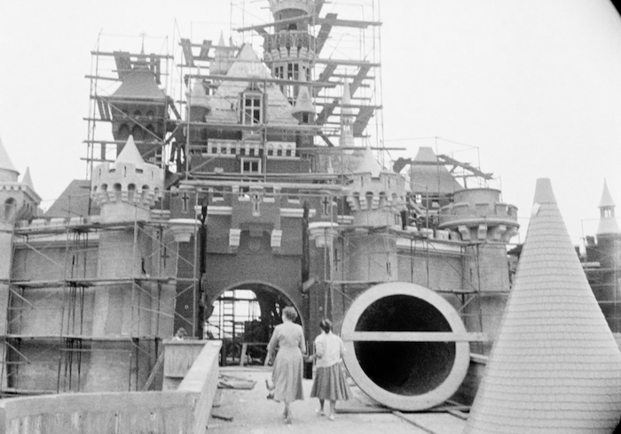 Disneyland builders work around the clock to meet the July 17, 1955 opening date for the theme park in Anaheim, California. Disneyland took one year to complete, enlisted 2,500 laborers and cost $17 million to build. Walt Disney’s brother and business partner, Roy Disney, hired C.V. Wood to build the park. Ruth Shellhorn, a landscape architect who designed the Southern California look for Bullock’s department stores, was hired to design the landscape for the park and its pedestrian circulation system. The footage shows views of Main Street, Sleeping Beauty’s Castle, the Tahitian village, the Mark Twain riverboat and other attractions under construction. The Disneyland Mill was the first building to be built, located at the corner of the Lincoln building. The Fire Station can also be seen, which served as Walt’s apartment. When Disneyland opened, there were only 18 attractions, 14 of which are still running.